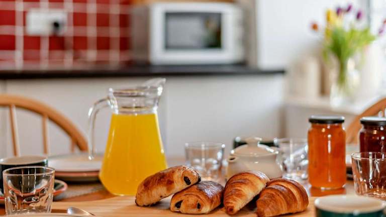 Das Ferienhaus besteht aus zwei Schlafzimmern und bietet eine voll ausgestattete Küche. Handtücher und Bettwäsche sind bei der Unterkunft inbegriffen.