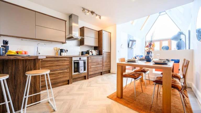 Die Unterkunft 2 bed with terrace - Llandaff Lofts by Tŷ SA bietet eine moderne Ferienwohnung mit einem Balkon und einer Terrasse in ruhiger Lage.