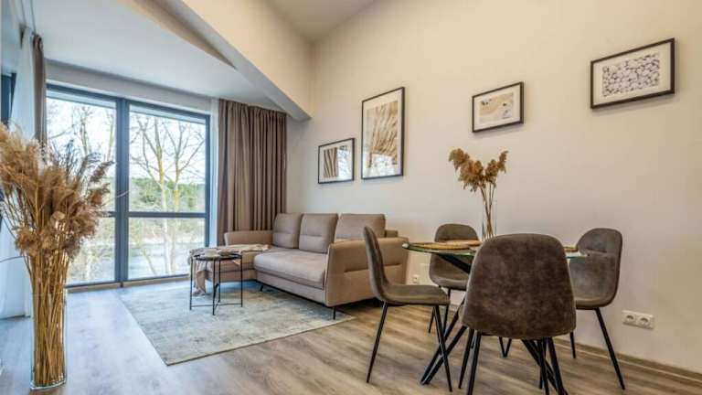 Das Live by the sea-Apartment in Palanga bietet eine komfortable Unterkunft mit Balkon und Terrasse, von der aus Sie einen wunderschönen Blick auf den Fluss genießen können. Das klimatisierte Apartment verfügt über zwei separate Schlafzimmer, eine voll ausgestattete Küche und ein Badezimmer. Kostenlose Parkplätze stehen zur Verfügung und der FKK-Strand Sventoji ist nur 500 m entfernt. Das Apartment bietet auch einen Kinderspielplatz und ist somit ideal für Familien. Entspannen Sie am Strand Šventoji oder besuchen Sie die Palanga-Kirche der Himmelfahrt, die nur 15 km entfernt ist. Der internationale Flughafen Palanga liegt nur 6 km von der Unterkunft entfernt.