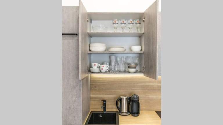 Das Live by the sea-Apartment bietet eine Selbstversorger-Unterkunft, so dass die Gäste ihre eigenen Mahlzeiten in der voll ausgestatteten Küche zubereiten können. Es gibt auch Restaurants in der Nähe, in denen die Gäste lokale und internationale Küche genießen können.