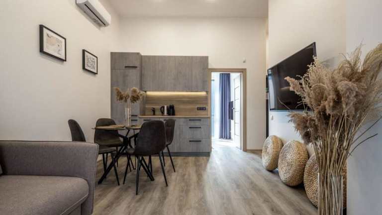 Das klimatisierte Apartment im Live by the sea-Apartment besteht aus zwei separaten Schlafzimmern, die für Komfort und Privatsphäre sorgen. Die voll ausgestattete Küche ermöglicht es den Gästen, ihre eigenen Mahlzeiten zuzubereiten, und das Badezimmer ist mit Handtüchern und Bettwäsche ausgestattet. Die Unterkunft verfügt auch über einen Balkon und eine Terrasse mit Flussblick, ideal zum Entspannen und Genießen der Umgebung.