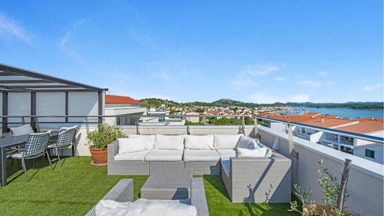Die Unterkunft befindet sich in Murter, in der Nähe des Strandes Luke und bietet zudem einen schönen Meerblick. Die Umgebung umfasst Sehenswürdigkeiten wie die Barone Fortress, die 32 km entfernt liegt, sowie das Rathaus von Šibenik in 33 km Entfernung und die Marina Kornati in 41 km Entfernung.