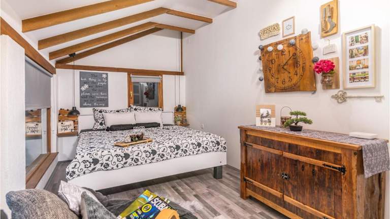 Das Ferienhaus hat 2 Schlafzimmer und ein Wohnzimmer. Die voll ausgestattete Küche beinhaltet einen Kühlschrank und eine Kaffeemaschine. Es gibt ein Badezimmer mit einer Dusche.