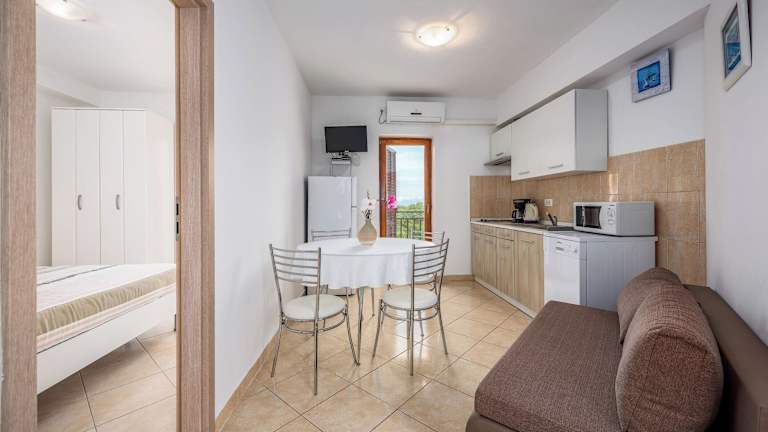 Die Unterkunft befindet sich in Drenje, in der Region Istrien, direkt am Strand gelegen und bietet einen Zugang zu einer Terrasse sowie einen Blick auf das Meer. Die Nähe zu Strand Huboka, welcher 2 km entfernt ist, und Morosini-Grimani Castle, das sich 40 km entfernt befindet, ist ebenfalls erwähnenswert. Der nächste Flughafen, der Flughafen Pula, ist 53 km von der Unterkunft entfernt.
