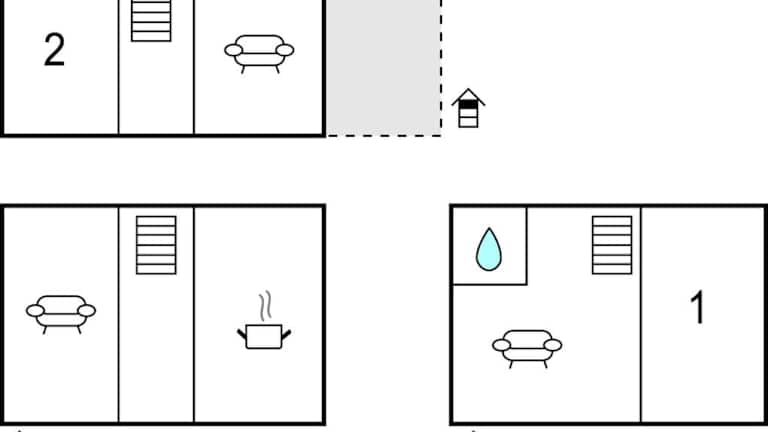 Das Ferienhaus besteht aus zwei separaten Schlafzimmern, einem Wohnzimmer und einem Badezimmer. Die Zimmer sind mit Klimaanlage ausgestattet.