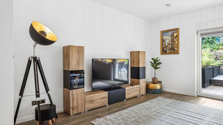Die Unterkunft umfasst zwei Schlafzimmer, eine Küche mit Kühlschrank und Geschirrspüler, ein Wohnzimmer sowie einen Fernseher. Zusätzlich gibt es eine Sonnenterrasse.