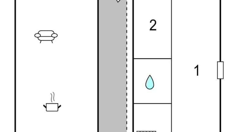 Das Ferienhaus umfasst ein Wohnzimmer mit einem TV und zwei Schlafzimmer. Es ist ideal für Familien oder Gruppen, die eine private und komfortable Atmosphäre suchen.