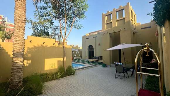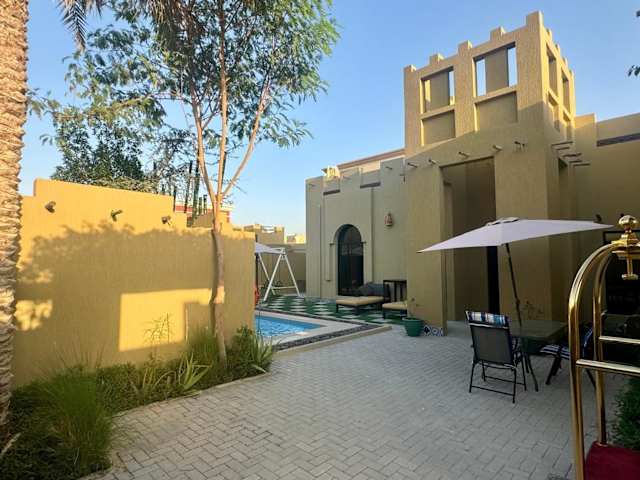 Die 2 Bedroom Villa in Ras Al Khaimah mit privatem Swimming Pool bietet Übernachtungsmöglichkeiten in einem komfortablen Umfeld. Die Villa verfügt über Klimaanlage und bietet zusätzlichen Komfort durch Annehmlichkeiten wie kostenloses WLAN und eine Gemeinschaftslounge. Ein Zimmerservice ist ebenfalls verfügbar.