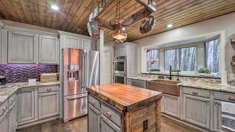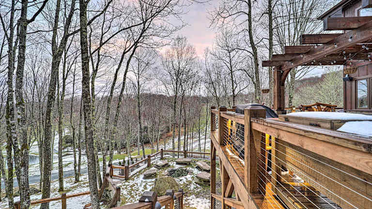 Das Luxury Mountain Hideaway with Hot Tub, 2 Mi to Ski! in Beech Mountain ist eine luxuriöse Unterkunft, die mit modernem Komfort und einer atemberaubenden Lage punktet. Mit 4 Schlafzimmern, einem geräumigen Wohnzimmer und einer voll ausgestatteten Küche bietet das Ferienhaus ausreichend Platz für große Familien oder Gruppen. Der Whirlpool und die Balkone bieten einen herrlichen Blick auf die umliegende Berglandschaft. Die Nähe zum Sugar Mountain Resort und dem Grandfather Mountain machen dieses Hideaway zum perfekten Ausgangspunkt für Outdoor-Aktivitäten.