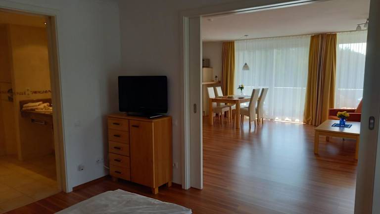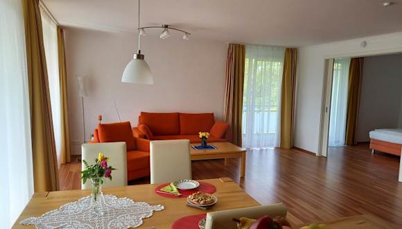 Das 2-Zi. Luxus Appartement mit Bademantelgang zur Wohlfühltherme ist eine private Ferienwohnung, die einen direkten Zugang zur Therme ermöglicht. Die Unterkunft wird von einem privaten Gastgeber geführt und ist nur für Erwachsene. Die Mindestalter für den Check-in beträgt 18 Jahre, und Haustiere sind nicht gestattet.