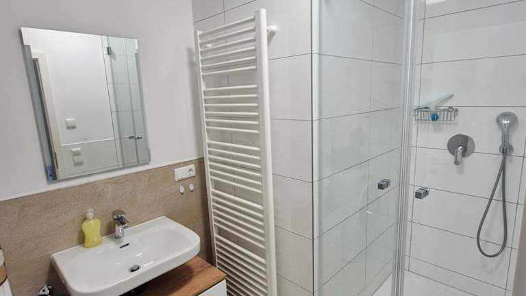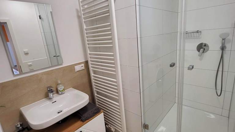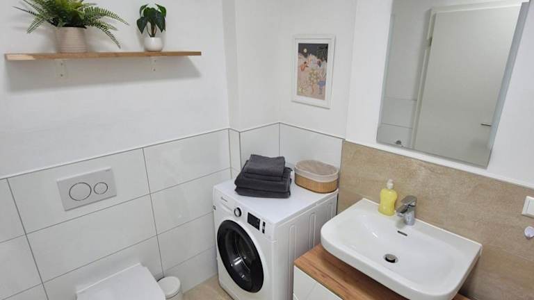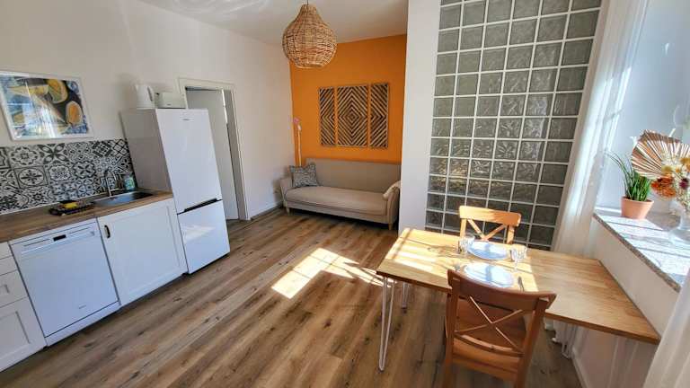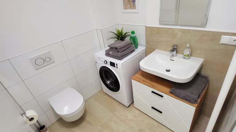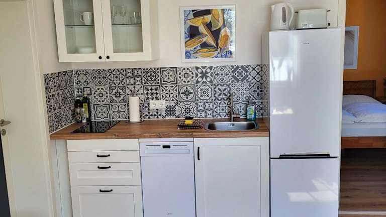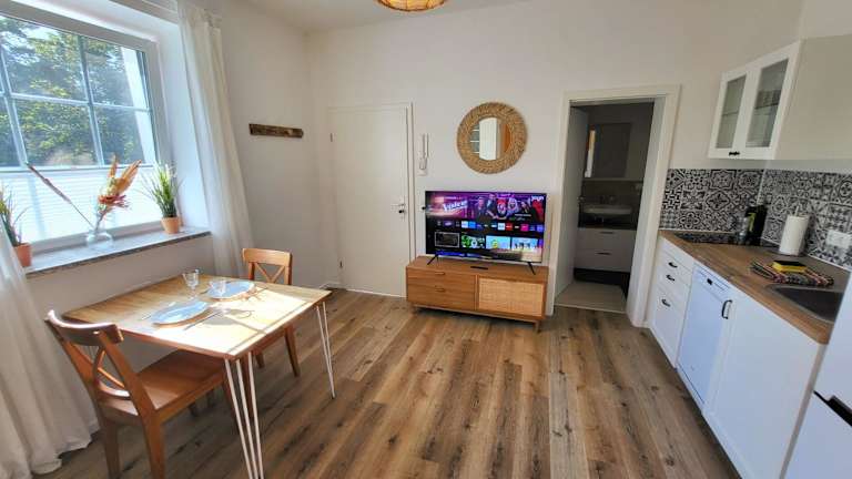 In der Ferienwohnung sind ein Schlafzimmer, eine Küche mit Kühlschrank und Geschirrspüler sowie ein Badezimmer mit Dusche, Haartrockner und Waschmaschine vorhanden. Handtücher und Bettwäsche werden bereitgestellt. Die Unterkunft ist rauchfrei und bietet Nichtraucherzimmer.