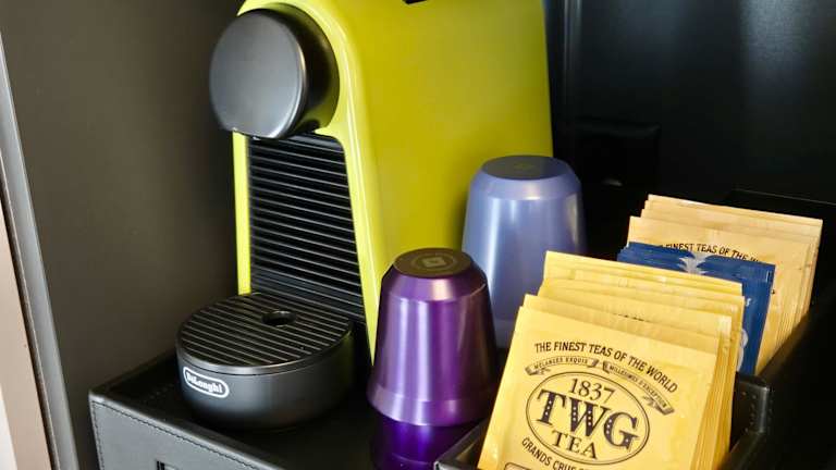 Es besteht die Möglichkeit, Essenslieferungen in die Unterkunft zu erhalten. In der voll ausgestatteten Küche stehen ein Kühlschrank und eine Kaffeemaschine zur Verfügung.