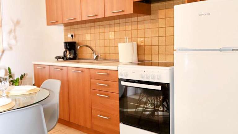 Das klimatisierte Apartment bietet Ihnen einen gemütlichen Wohnbereich, ein komfortables Schlafzimmer und eine voll ausgestattete Küche mit Kühlschrank und Kaffeemaschine. Das Apartment verfügt über ein eigenes Badezimmer mit einer Badewanne oder einer Dusche und einem Haartrockner. Handtücher und Bettwäsche werden gestellt, um Ihnen einen angenehmen Aufenthalt zu ermöglichen.