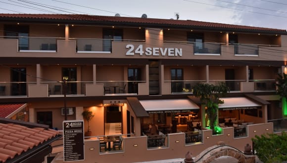 24Seven is a hotel of high standards, fully refurbished in 2017 to 201\. It is located in the old town of Malia and is five minutes away from the main road (bars and clubs), 2 minutes away from the center of the town (cafes and restaurants) and fifteen minutes away from Malia’s main beach. Distance from Airport: 26 Km Distance from Heraklion Port: 30 Km Distance from Malia marina: 1 Km Distance from the beach: 20 mins Distance from the Malia main road: 5 mins Our air conditioned rooms have been decorated in a contemporary character, they are spacious with excellent comforts. They contain large flatscreen televisions (Smart TV), espresso machines, a clothing iron, hairdryer and provides everything you need in order to feel at home. In our hotel bar you can enjoy some of the most famous cocktails that are found worldwide, drink some of the most refreshing juices made from local fresh fruit and also watch all the live sports in the giant screens found in the bar As well as the 24seven hotel, you will find the restaurant Grill House Sopato which provides the ideal place for those that love or would like to try traditional Greek food with a modern look. In the beautiful area near the pool you can savor and enjoy one of the three breakfast choices that are freely provided with any room booking.