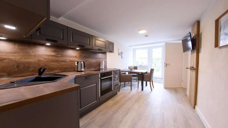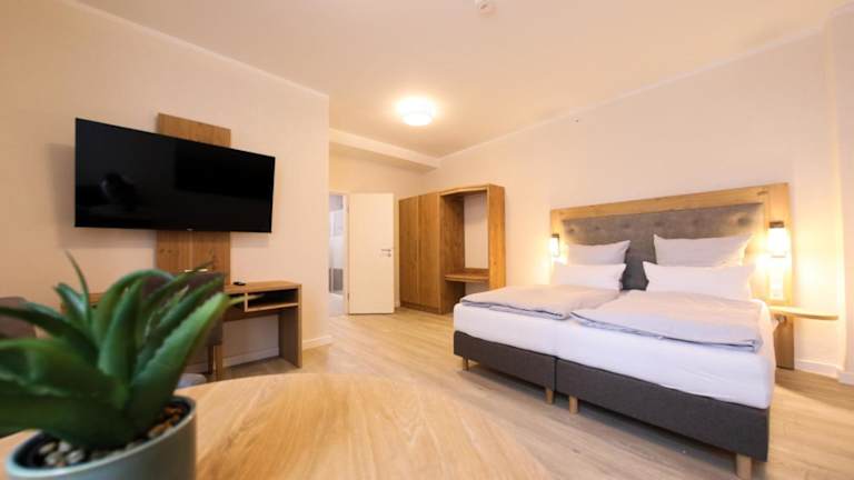 Die Zimmer in der Pension sind modern und komfortabel eingerichtet. Sie verfügen über einen Schreibtisch, einen Flachbild-TV und ein eigenes Bad mit Bettwäsche und Handtüchern. Einige Zimmer bieten auch eine Küche mit einem Kühlschrank, einem Geschirrspüler und einem Backofen. Alle Zimmer verfügen über einen Kleiderschrank.