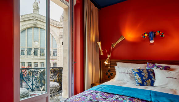 Eklektischer Mix aus afrikanischen und asiatischen Stilelementen in aufregenden Farbwelten. Regenduschen, Safe, Minibar, UE Boom Bluetooth-Lautsprecher. Mit atemberaubenden Blick auf den Gare du Nord sowie Montmartre und Sacré-Coeur.