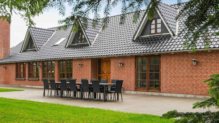 Das 26-Personen Ferienhaus in Nimtofte-By Traum bietet kostenloses WLAN und eine Terrasse. Es verfügt über 8 Schlafzimmer, 3 Badezimmer, eines mit Whirlpool, und einen großen Gemeinschaftsraum mit einem TV mit Kabelkanälen.