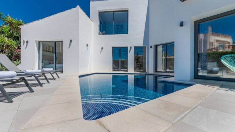 Die 2705 - Schicke Villa in Santa Ponsa Nova bietet Übernachtungsmöglichkeiten mit einem eigenen Pool, Balkon und Blick auf die Berge sowie das Meer. Zur Ausstattung gehören ein Garten, eine Terrasse und kostenloses WLAN in allen Bereichen. Die Villa ist klimatisiert und verfügt über vier Schlafzimmer, ein Wohnzimmer, eine voll ausgestattete Küche, drei Badezimmer sowie Grillmöglichkeiten.