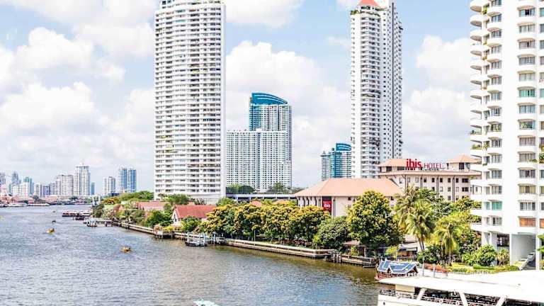Das Ibis Hotel Bangkok Riverside befindet sich im Herzen Bangkoks direkt am Ufer des Menam Chao Phraya Flusses. Die Lage ist zentral und ermöglicht einen bequemen Zugang zu Sehenswürdigkeiten und Einkaufszentren. Zur Skytrain Station 'Krung Than Buri' besteht ein Shuttle-Service gegen Gebühr. Der Flughafen Suvarnabhumi International Airport liegt etwa 38 km entfernt, die Transferzeit beträgt ca. 30 Minuten.