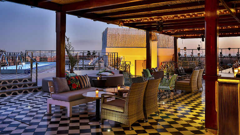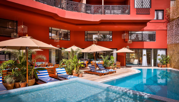 Das 2Ciels Boutique Hôtel in Marrakesch ist eine moderne und stilvolle Unterkunft, die mit ihrem Außenpool, der Sonnenterrasse und den komfortablen Zimmern für einen angenehmen Aufenthalt sorgt. Genießen Sie das kostenfreie WLAN und lassen Sie sich im Restaurant kulinarisch verwöhnen. Die zentrale Lage ermöglicht es Ihnen, die Sehenswürdigkeiten der Stadt bequem zu erreichen.