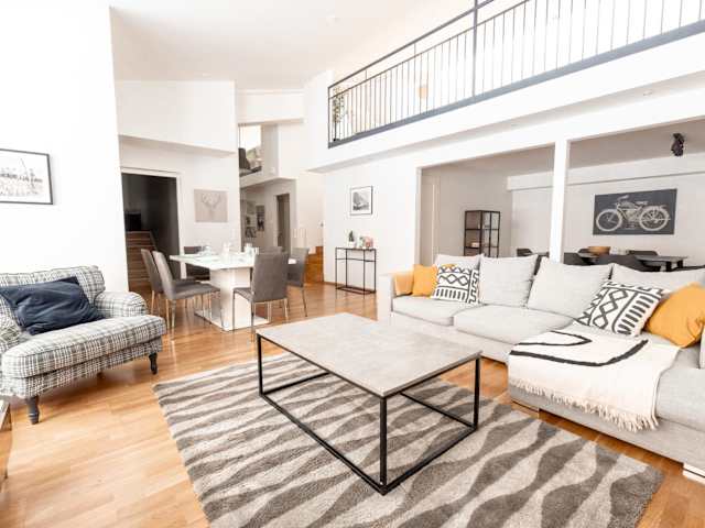 Die 2ndhomes Bright & Spacious 2-Story Apartment with Sauna ist eine moderne Ferienwohnung, die eine komfortable Unterkunft mit kostenlosem WLAN und einem Flachbild-TV bietet. Die Wohnung ist klimatisiert und erstreckt sich über zwei Etagen, was ein geräumiges Ambiente schafft.