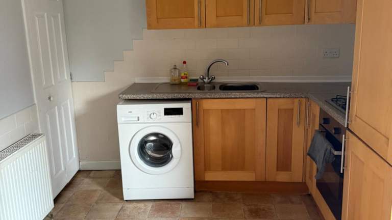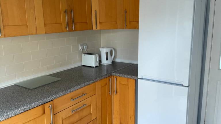 Die Unterkunft bietet drei Schlafzimmer sowie eine voll ausgestattete Küche mit Kühlschrank und Ofen. Zusätzlich gibt es ein Badezimmer mit Dusche, Haartrockner und Waschmaschine. Ein Fernseher ist ebenfalls vorhanden. Es wird darauf hingewiesen, dass die Unterkunft haustierfrei ist.