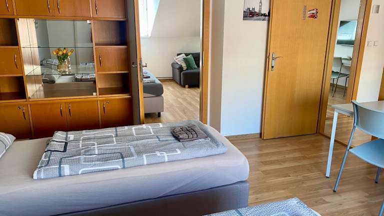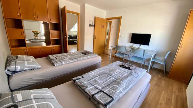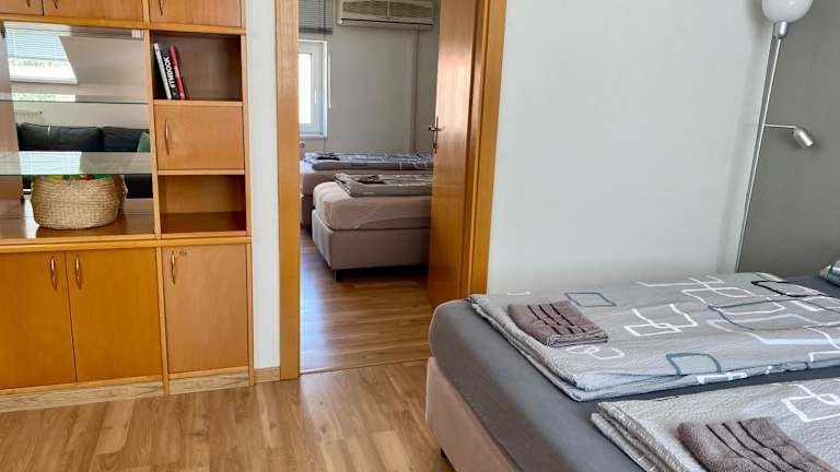 Das Apartment verfügt über 3 Schlafzimmer und 2 Badezimmer, die Platz für eine komfortable Übernachtung bieten. Die Zimmer sind mit Bettwäsche und Handtüchern ausgestattet und verfügen über einen Flachbild-Sat-TV. Eine voll ausgestattete Küche steht zur Verfügung, um Ihre eigenen Mahlzeiten zuzubereiten, und ein Essbereich bietet Platz für gemeinsame Mahlzeiten. Die Terrasse bietet einen herrlichen Blick auf die Stadt.