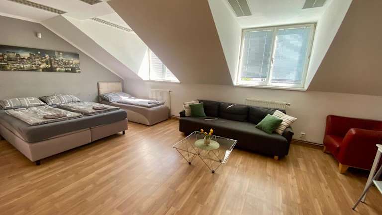 Erleben Sie einen komfortablen Aufenthalt im 3-Bedroom Apartment in Rajhrad, das mit einer voll ausgestatteten Küche, 2 Badezimmern und einem Parkplatz aufwartet. Das Apartment bietet kostenfreies WLAN, eine Gemeinschaftslounge und eine Gemeinschaftsküche. Genießen Sie die Aktivitäten in der Umgebung wie Wandern und Radfahren. Das Apartment verfügt über 3 Schlafzimmer, einen Flachbild-Sat-TV und eine Terrasse mit Stadtblick. Die Festung Spielberg und die Kathedrale St. Peter und Paul sind in der Nähe. Ein Flughafentransfer ist gegen Gebühr verfügbar.