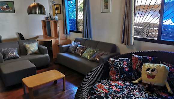 Das klimatisierte Ferienhaus im Tropical Beachhouse Dauin at Diving Sanctuary bietet Platz für bis zu 6 Personen. Es verfügt über 3 Schlafzimmer, ein gemütliches Wohnzimmer und eine voll ausgestattete Küche mit einem Kühlschrank und einer Kaffeemaschine. Die 2 Badezimmer sind mit Duschen ausgestattet und Handtücher und Bettwäsche werden gestellt. Genießen Sie die Privatsphäre und den Komfort eines eigenen Ferienhauses.