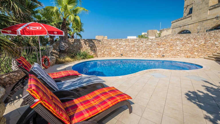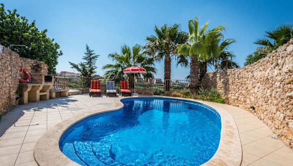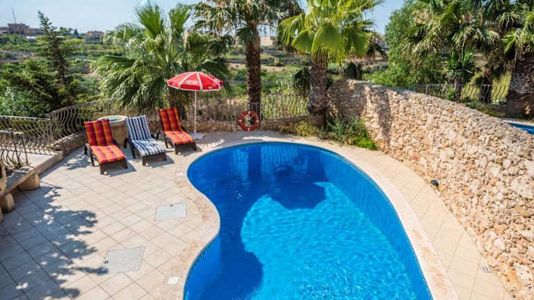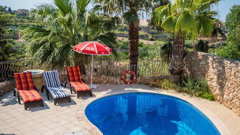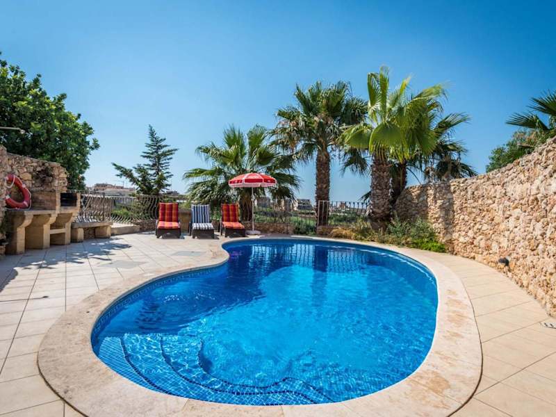 Das Sunset - Holiday Farmhouse with Large Private Pool in Nadur auf der Insel Gozo ist der perfekte Ort für einen erholsamen Urlaub. Mit klimatisierten Unterkünften, einem eigenen Pool und einer Terrasse bietet dieses Ferienhaus alles, was Sie für einen komfortablen Aufenthalt benötigen. Genießen Sie den Gartenblick und den Balkon sowie kostenfreies WLAN. Das Ferienhaus verfügt über 4 Schlafzimmer, ein geräumiges Wohnzimmer, eine voll ausgestattete Küche und 4 Badezimmer. Der Außenpool lädt zum Schwimmen ein und im Garten können Sie sich entspannen und die Grillmöglichkeiten nutzen. Die Strände Dahlet Qorrot und San Blas sind nur wenige Kilometer entfernt. Der internationale Flughafen Malta ist ebenfalls gut erreichbar.