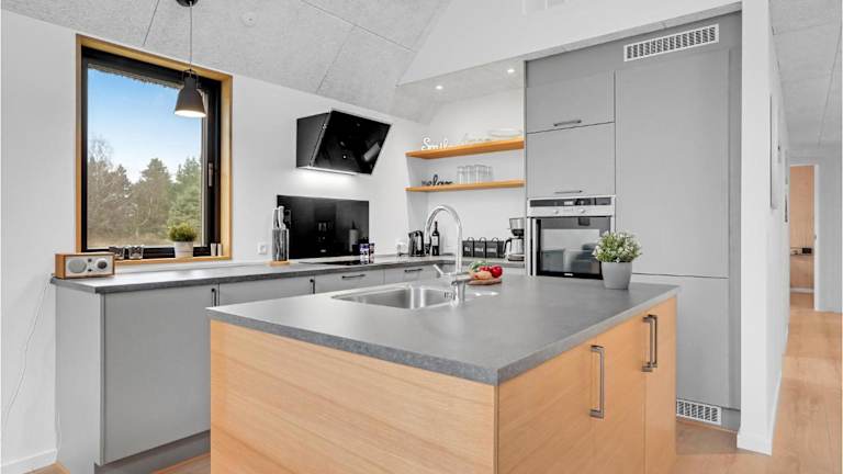 Es stehen Grillmöglichkeiten zur Verfügung. Die Küche des Ferienhauses ist vollständig ausgestattet, einschließlich Kühlschrank und Kaffeemaschine.