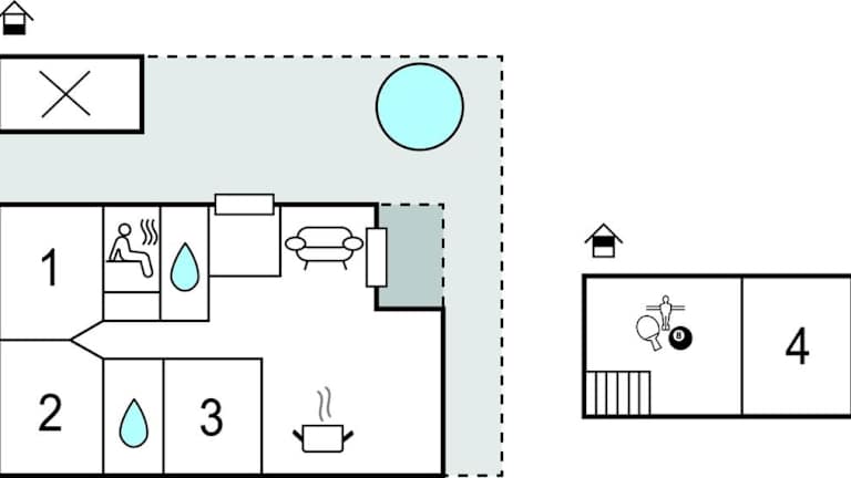 Das Ferienhaus verfügt über 4 Schlafzimmer, ein Wohnzimmer, 2 Badezimmer mit Dusche und Whirlpool sowie eine voll ausgestattete Küche.