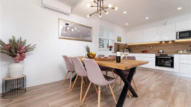 Die Unterkunft bietet drei Schlafzimmer, eine klimatisierte Umgebung, einen Flachbild-TV sowie eine voll ausgestattete Küche mit Kühlschrank und Geschirrspüler.