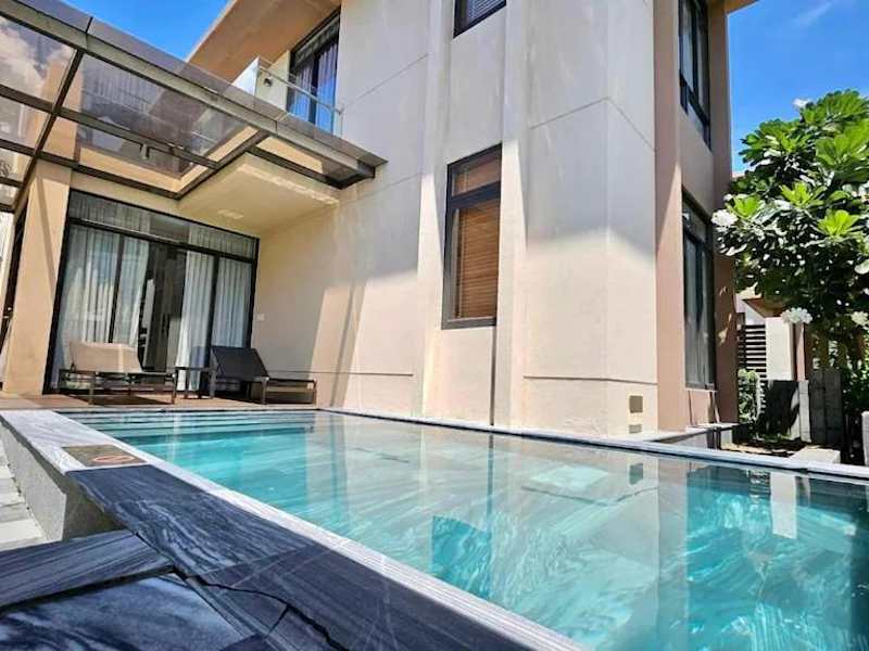 Die 3-bedroom Villa with pool inhouse Cam Ranh beach bietet Übernachtungsmöglichkeiten in einer klimatisierten Villa mit privatem Pool und Garten. Die Unterkunft umfasst einen Garten, eine Bar sowie kostenfreies WLAN für die Gäste.