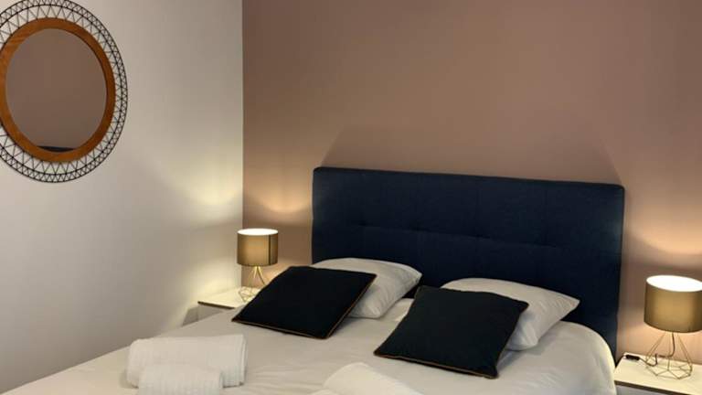 Die Ferienwohnung umfasst zwei Schlafzimmer, ein Wohnzimmer und ein Badezimmer mit Dusche, sowie kostenlosen Pflegeprodukten. Die Küche ist mit einem Kühlschrank und einer Kaffeemaschine ausgestattet. Handtücher und Bettwäsche stehen zur Verfügung, und es gibt schallisolierte Zimmer. Die Unterkunft ist klimatisiert und als Nichtraucherunterkunft gekennzeichnet.