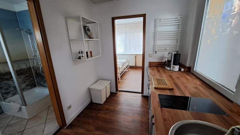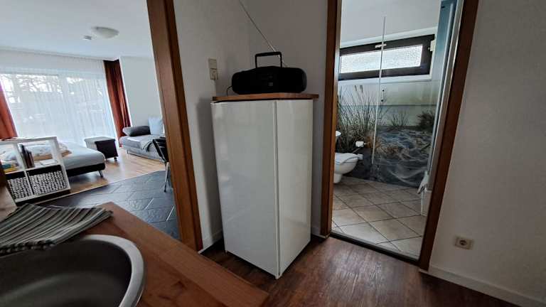 Das Ferienhaus umfasst 1 Schlafzimmer und ein Wohnzimmer. Die voll ausgestattete Küchenzeile ist mit einem Kühlschrank und einer Kaffeemaschine ausgestattet. Das Badezimmer ist mit einer Dusche und einem Haartrockner versehen. Handtücher und Bettwäsche werden bereitgestellt.