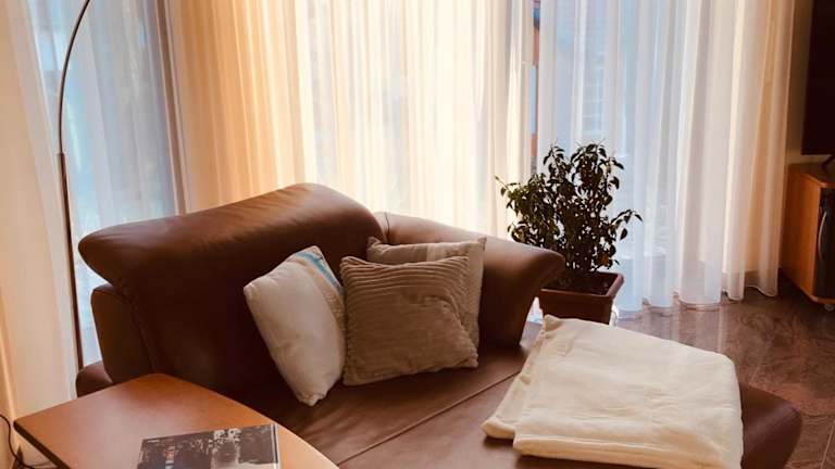 Das klimatisierte Apartment besteht aus einem Schlafzimmer, einem gemütlichen Wohnzimmer, einer voll ausgestatteten Küche mit Kühlschrank und Kaffeemaschine sowie einem Badezimmer mit Dusche und kostenlosen Pflegeprodukten. Handtücher und Bettwäsche werden gestellt, damit Sie sich wie zu Hause fühlen können.