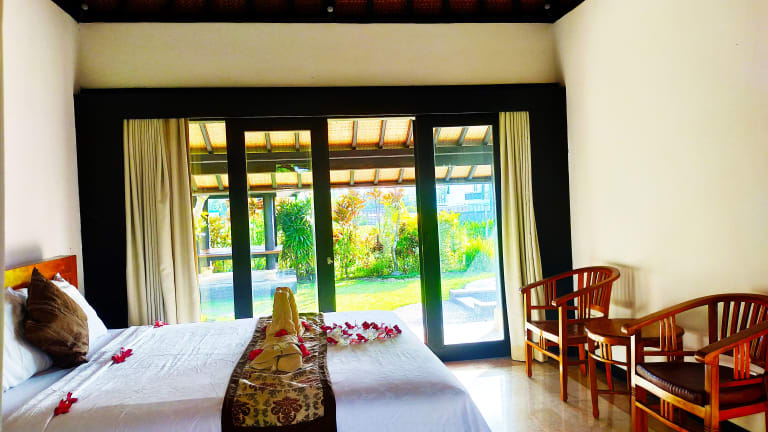 Die Unterkunft befindet sich in Saba, weniger als 1,7 km vom Strand Pantai Saba und 5,1 km vom Tegenungan-Wasserfall entfernt. Nahegelegene Sehenswürdigkeiten sind die Höhle Goa Gajah, 12 km entfernt, und der Affenwald von Ubud, 15 km entfernt. Der Flughafen Ngurah Rai ist 27 km entfernt.