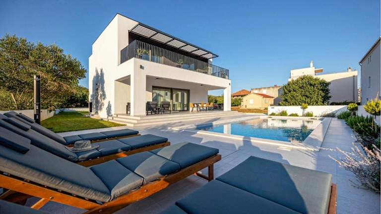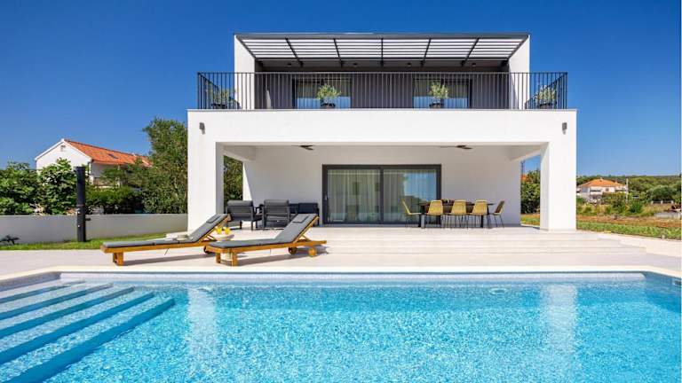 Das 4 Bedroom Cozy Home In Sukosan bietet einen Außenpool und imponierenden Meerblick. Das klimatisierte Ferienhaus ist mit vier Schlafzimmern, einem Flachbild-TV sowie einer Küche ausgestattet, die über Kühlschrank und Geschirrspüler verfügt. Außerdem stehen ein kostenloser Privatparkplatz und kostenloses WLAN zur Verfügung.