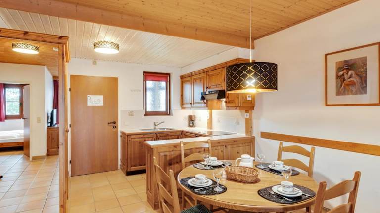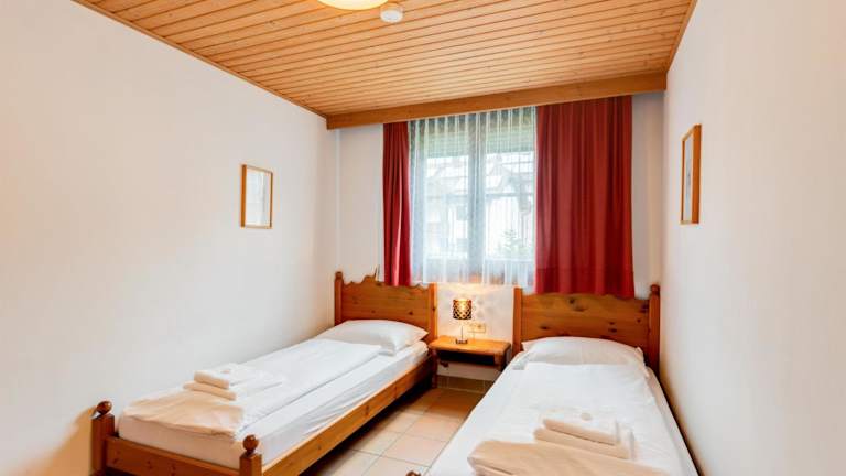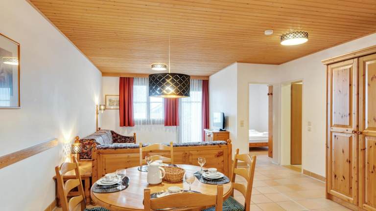 Die Ferienwohnung verfügt über zwei Schlafzimmer, eine Küche mit Kühlschrank und Geschirrspüler, einen TV, einen Sitzbereich sowie ein Badezimmer. Handtücher und Bettwäsche sind vorhanden, zudem steht ein Abstellraum für Skier zur Verfügung.
