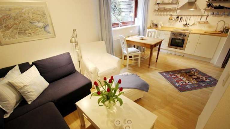Die Ferienwohnung umfasst 1 Schlafzimmer, eine Küchenzeile mit Kühlschrank und Ofen, einen TV, einen Sitzbereich sowie ein Badezimmer. Handtücher und Bettwäsche werden in der Unterkunft bereitgestellt.
