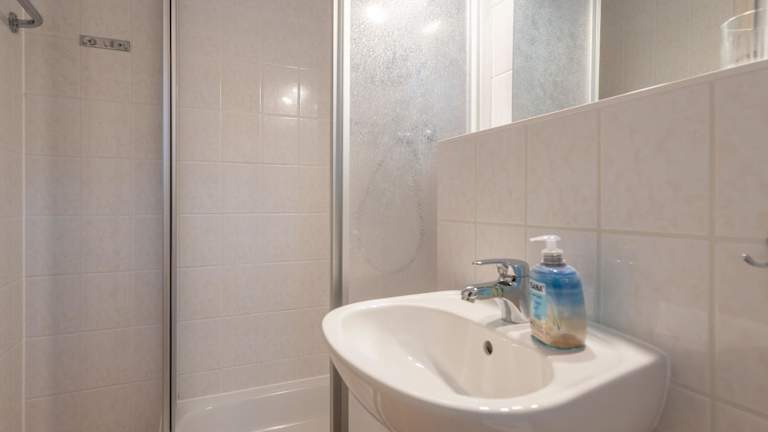 Die Wohnung verfügt über zwei Schlafzimmer, ein Wohnzimmer und eine voll ausgestattete Küchenzeile mit Kühlschrank und Kaffeemaschine. Das Badezimmer ist mit einer Dusche ausgestattet. Zur Unterhaltung steht ein Flachbild-TV zur Verfügung. Bettwäsche und Handtücher werden gemäß den Richtlinien der örtlichen Behörden gewaschen.