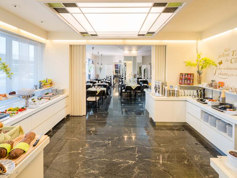 Unsere Zimmer sind mit Frühstücksbüffet buchbar. In unmittelbarer Nähe befinden sich zwei Partnerbetriebe: Pizzeria Galileo (05574/84959) und Klosterkeller Mehrerau (05574/71568). Hier finden unsere Gäste ein breites Speisenangebot. Für Gruppen ab 25 Personen servieren wir das Abendessen in unserem Restaurantbereich (außerhalb der Festspielzeit)