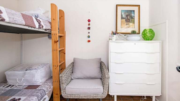 Das Ferienhaus verfügt über zwei Schlafzimmer und ein Badezimmer, ausgestattet mit einer Badewanne oder Dusche. Zur weiteren Ausstattung gehören ein TV mit Kabelkanälen und eine gut ausgestattete Küche mit Kühlschrank und Herdplatte.