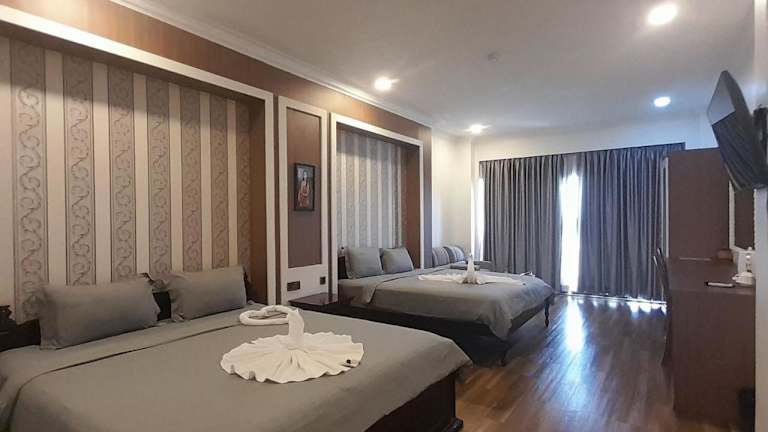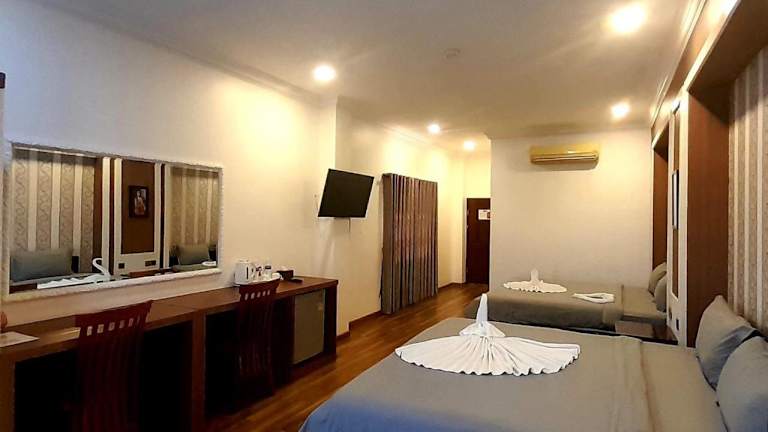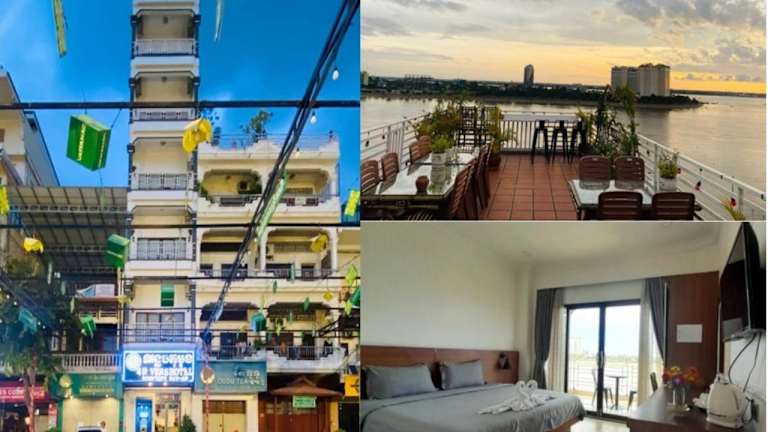 Das 4 RIVERS HOTEL bietet klimatisierte Zimmer mit kostenlosem WLAN und einem eigenen Badezimmer. Die Unterkunft verfügt über eine Terrasse und eine 24-Stunden-Rezeption, die in mehreren Sprachen, darunter Englisch, Französisch, Khmer und Thailändisch, zur Verfügung steht.