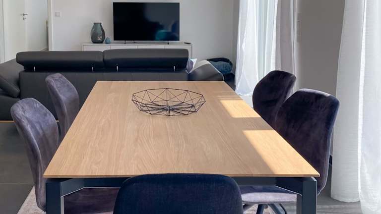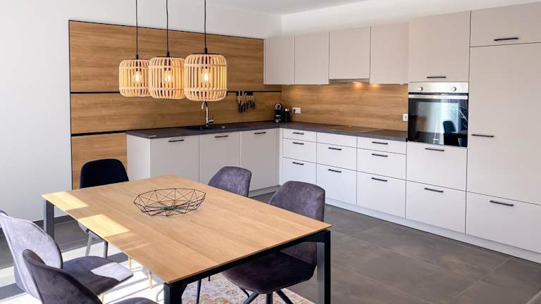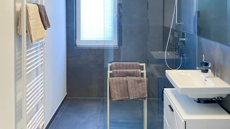 Die Ferienwohnung umfasst drei Schlafzimmer, ein Wohnzimmer, eine voll ausgestattete Küchenzeile mit Kühlschrank und Kaffeemaschine sowie zwei Badezimmer mit Dusche und Haartrockner. Handtücher und Bettwäsche werden bereitgestellt.