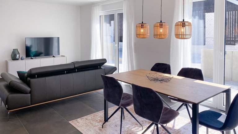 Die 4-Zimmer Wohnung, zentral Fränkische Schweiz, Neubau, bietet moderne Übernachtungsmöglichkeiten in einem Neubau und verfügt über kostenfreies WLAN sowie einen Flachbild-TV. Zur Unterkunft gehört eine große Terrasse und ein kostenloser Privatparkplatz.