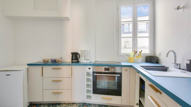 Die Ferienwohnung verfügt über 2 Schlafzimmer, eine Küche, die mit einem Kühlschrank und einem Geschirrspüler ausgestattet ist, sowie ein Badezimmer mit einer Dusche, einem Haartrockner und einer Waschmaschine.