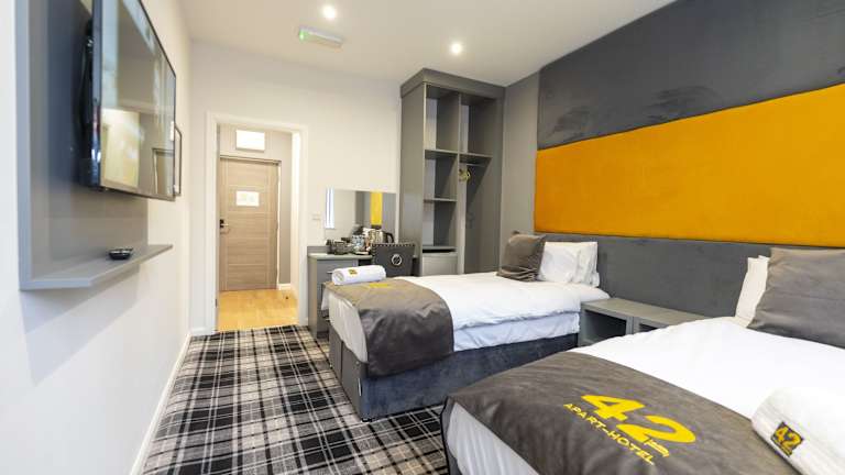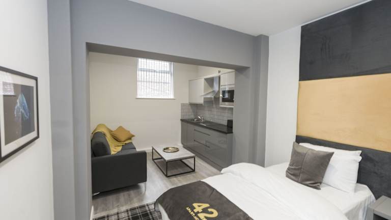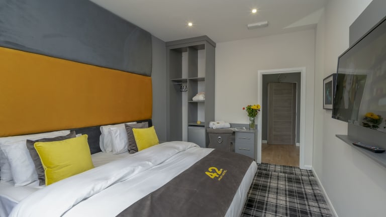 Die Zimmer im 42 Apart-Hotel sind komfortabel eingerichtet und bieten Annehmlichkeiten wie einen Schreibtisch, einen Flachbild-TV und einen Wasserkocher. Einige Zimmer verfügen über eine Küche mit einer Mikrowelle und einem Toaster, so dass Sie Ihre eigenen Mahlzeiten zubereiten können. Bettwäsche und Handtücher werden gestellt, um Ihren Aufenthalt so angenehm wie möglich zu gestalten.