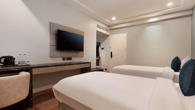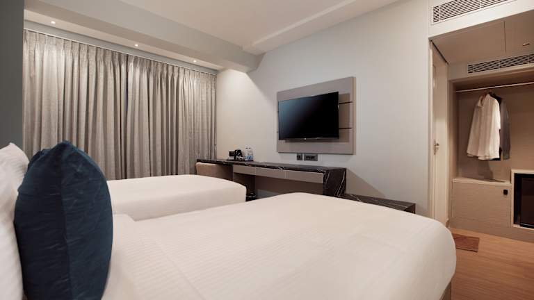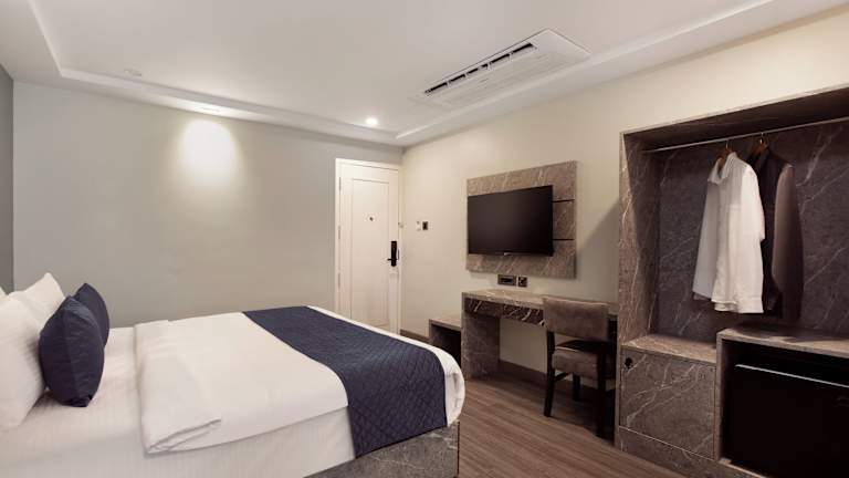 Die Zimmer sind ausgestattet mit einem Schreibtisch, einem Flachbild-TV und einem eigenen Badezimmer. Zur weiteren Ausstattung gehören Bettwäsche, Handtücher, ein Safe, ein Kleiderschrank und ein Wasserkocher. Ausgewählte Zimmer bieten Stadtblick.